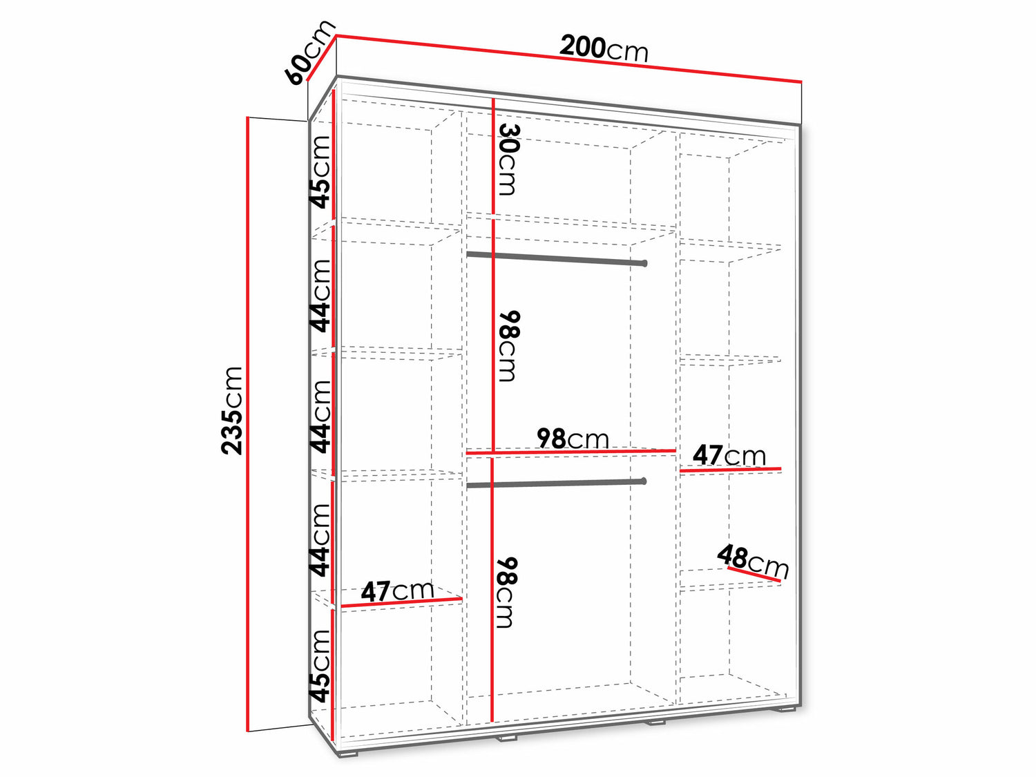 Gardróbszekrény Szafa DAKOTA 3 200 (gł.60) Kaszmir/Kaszmir + Czarny