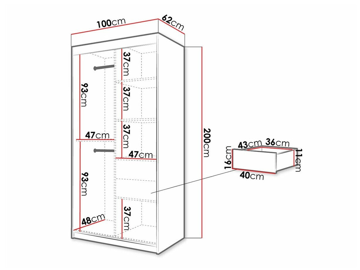 Gardróbszekrény 100 Jodełka 2 (Ratintu), Szín: Fehér + Fekete, Fiókok: Igen