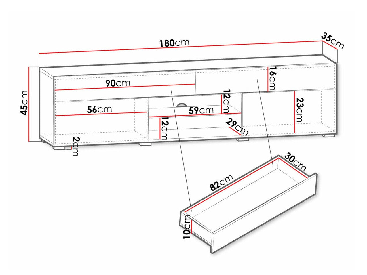 TV-állvány RTv CARRERA 180 (Mrentu), Szín: Fehér + Fényes fehér, Led világítás: Nem