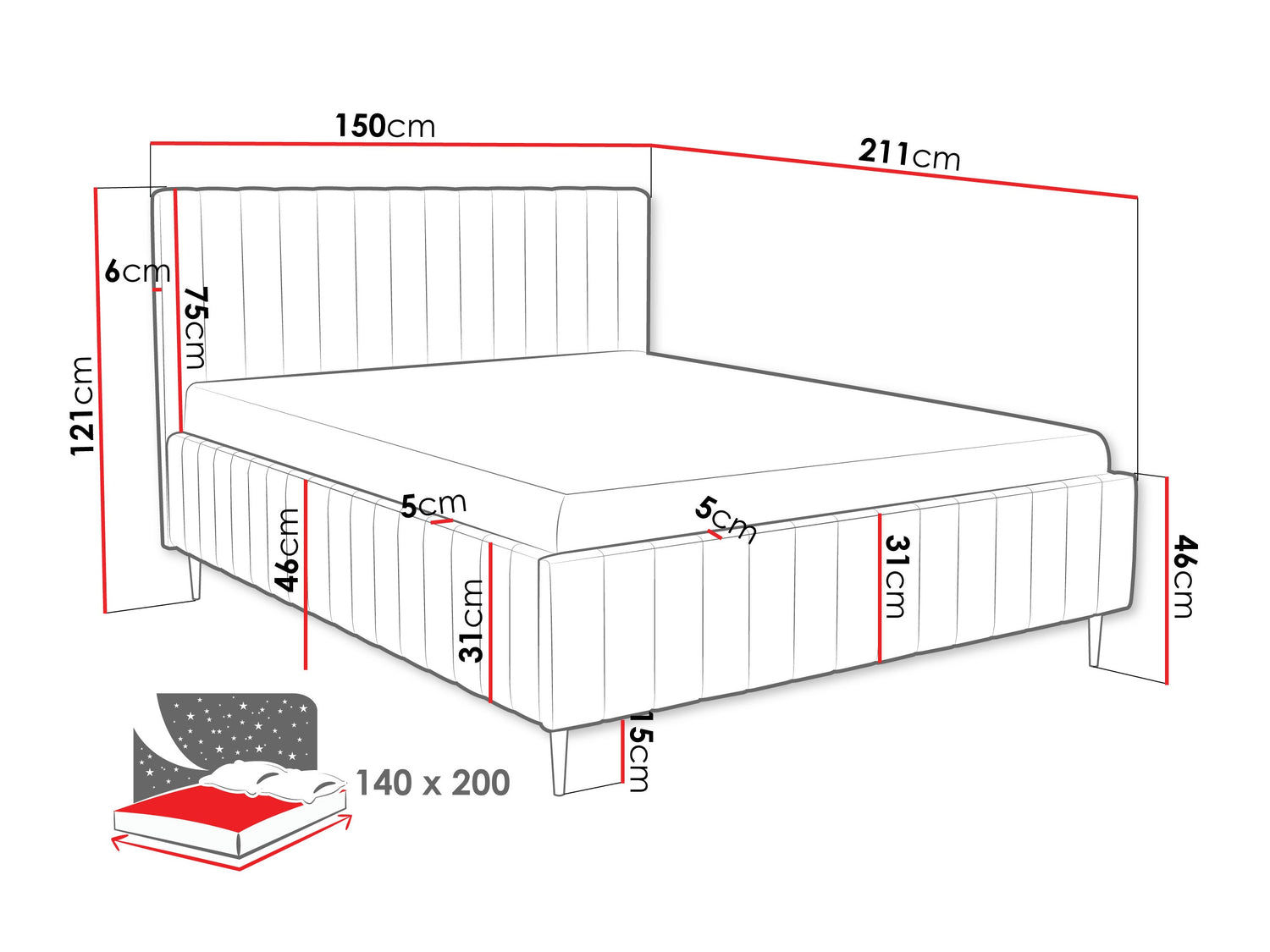 Ágy LEWEZO LEG, Szín: Fresh 37, Alvó felület mérete: 140 x 200 cm