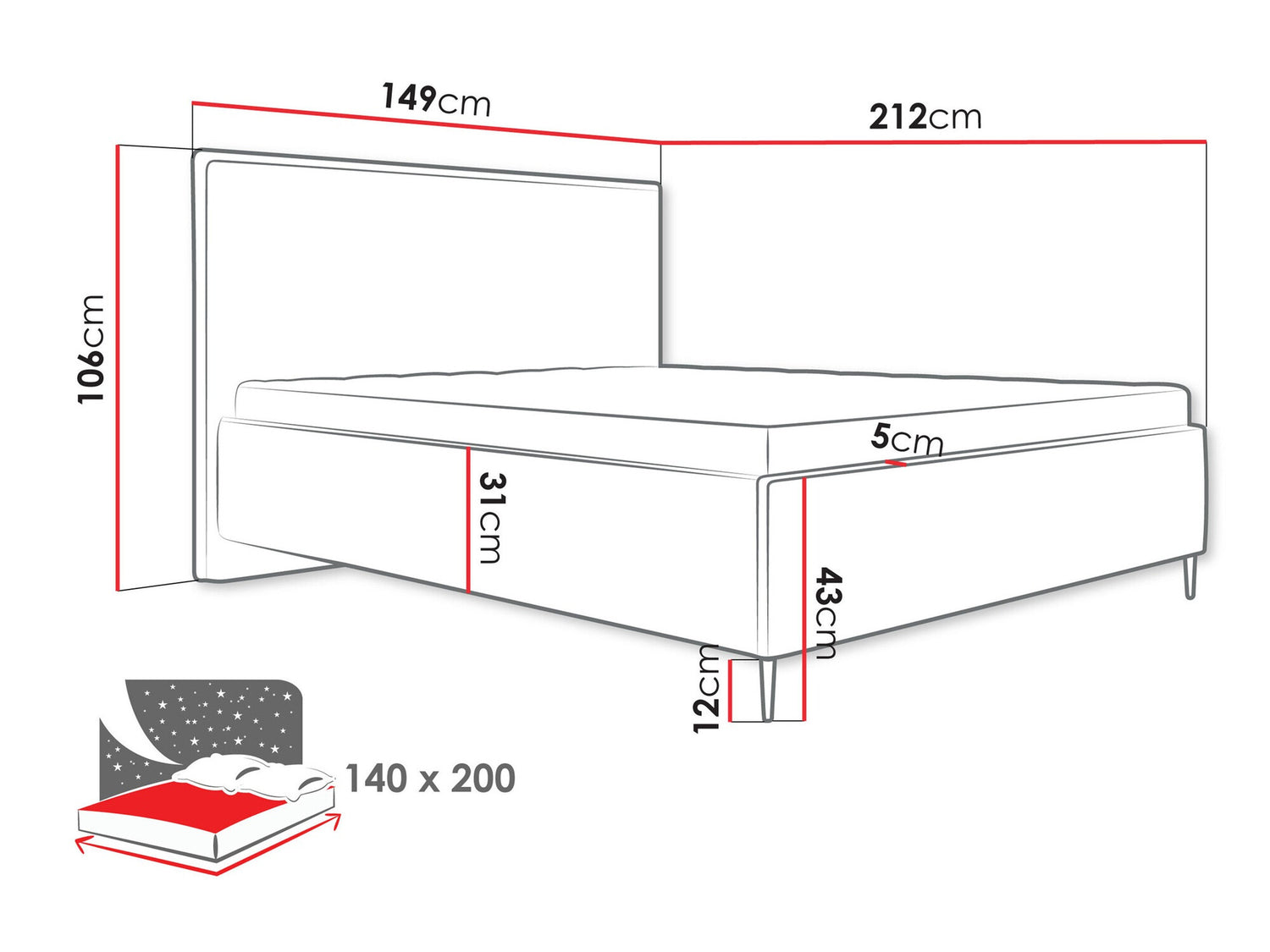 Ágy Łoże tapicerowane PURETTA, Szín: Poso 135, Alvó felület mérete: 140 x 200 cm