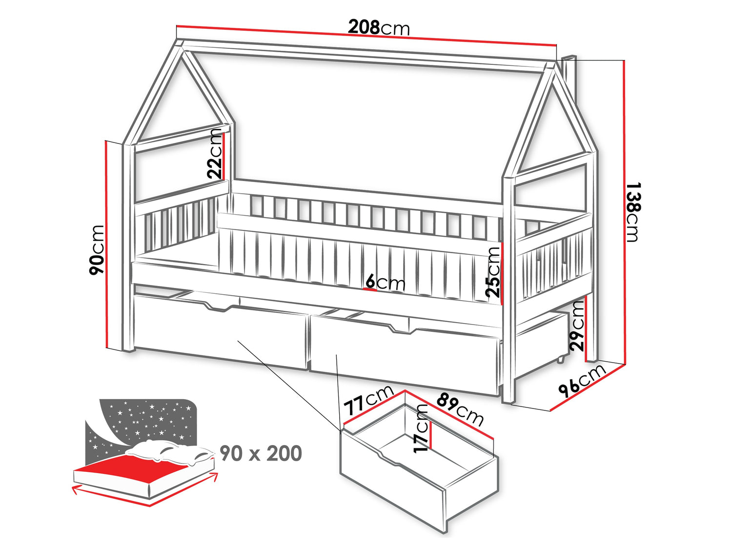 Ágyneműtartó méretei17 x 89 x 77 cm