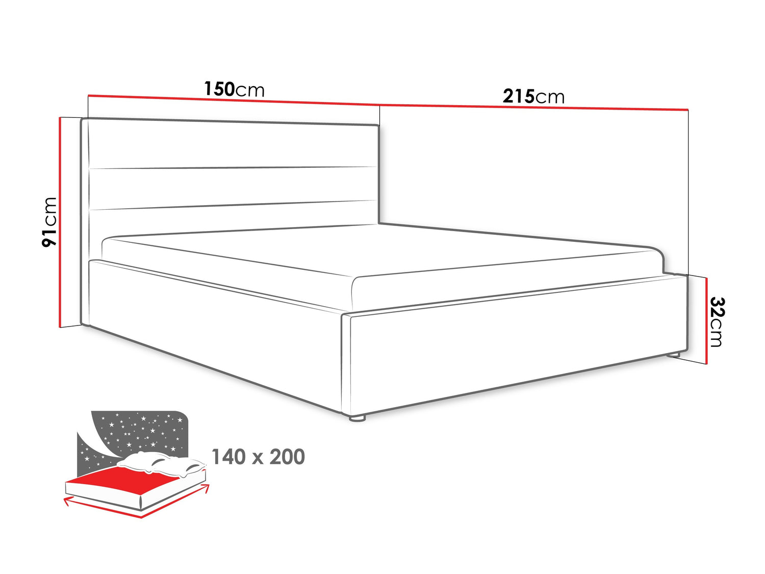 Ágyneműtartó méretei24 x 141 x 202 cm