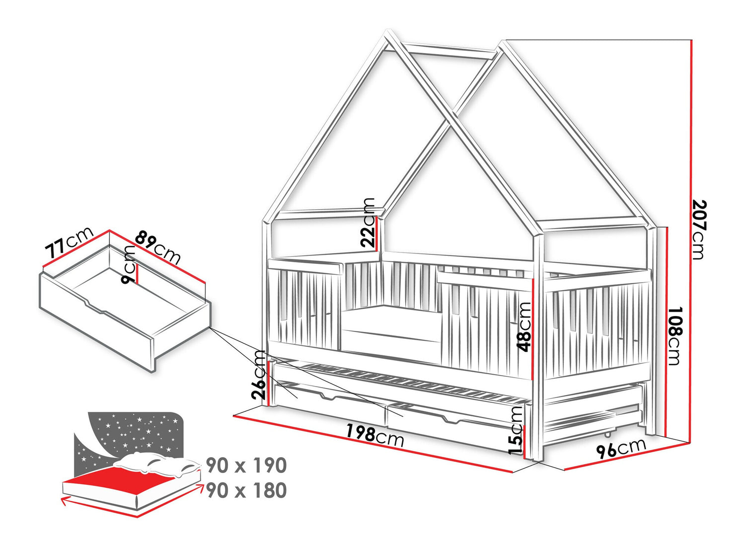 Ágyneműtartó méretei9 x 89 x 77 cm