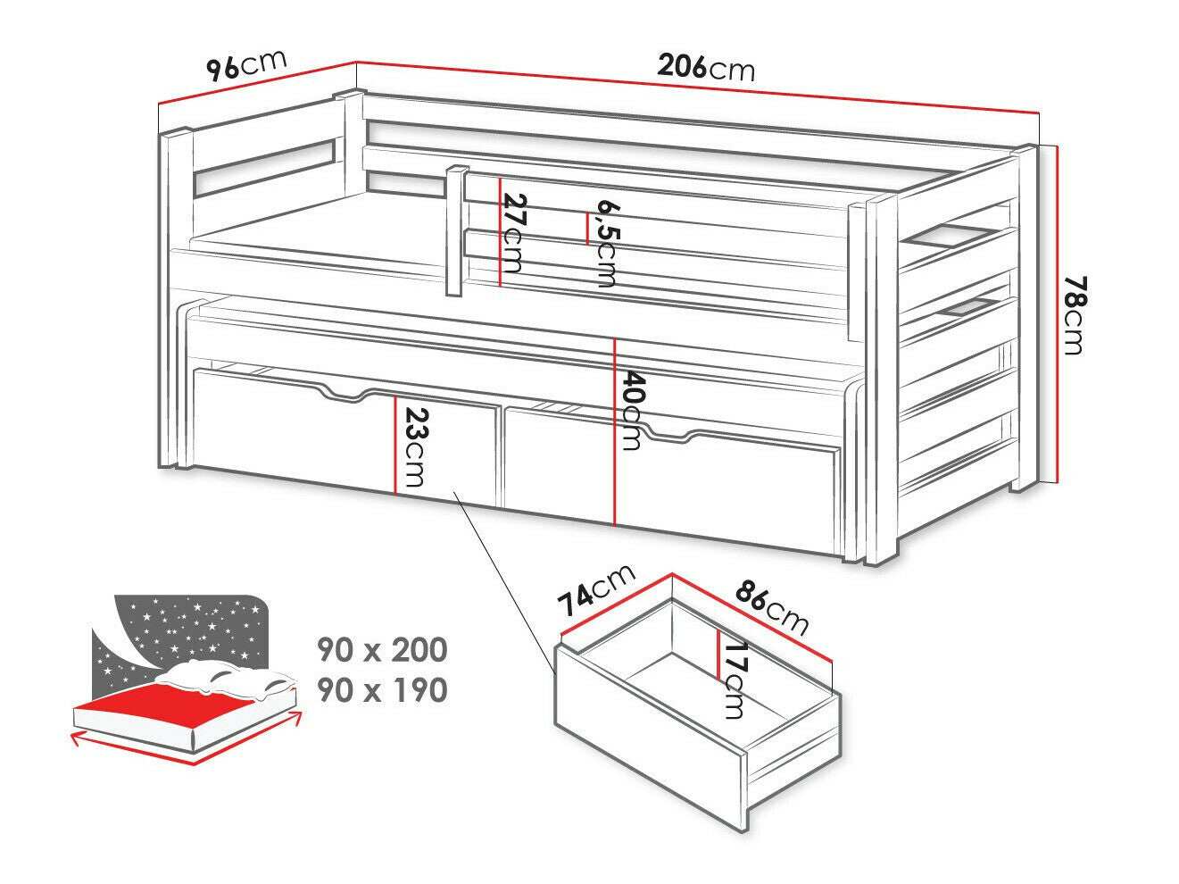 Ágyneműtartó méretei23 x 86 x 74 cm
