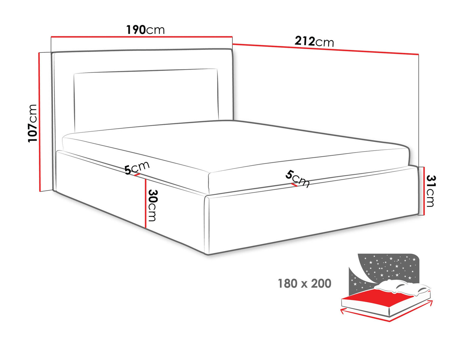 Ágyneműtartó méretei29 x 180 x 197 cm