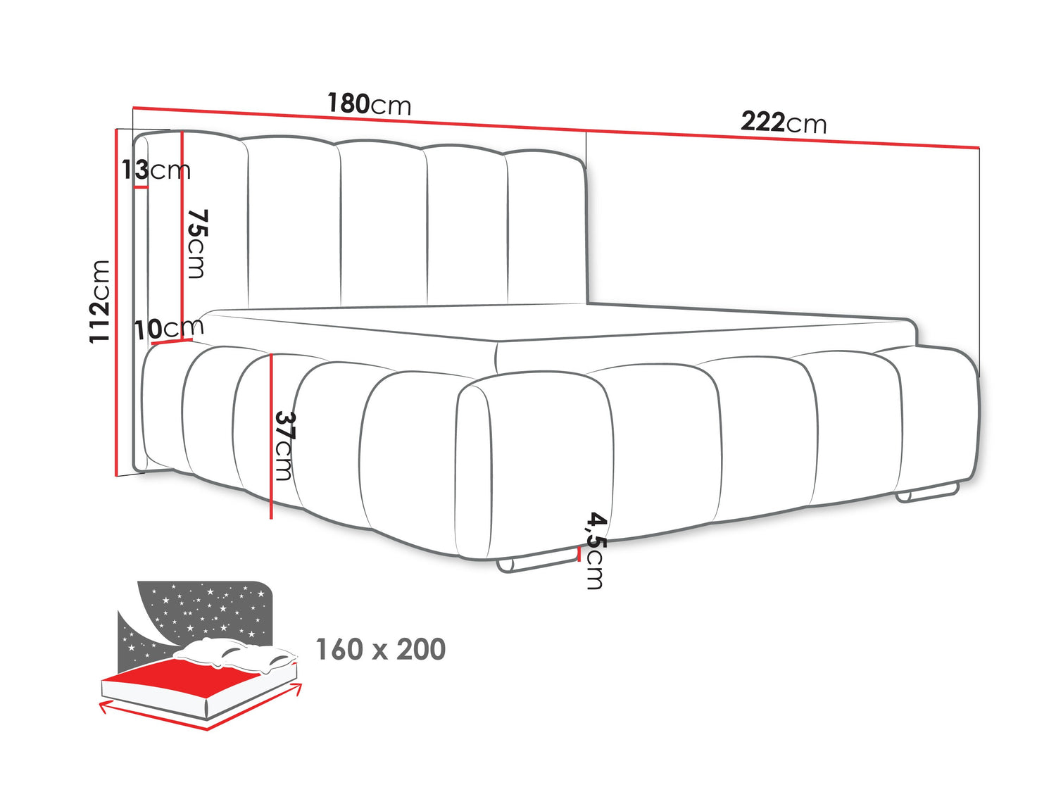 Ágy Łóżko tapicerowane WIZKO, Szín: Abriamo 8, Alvó felület mérete: 160 x 200 cm