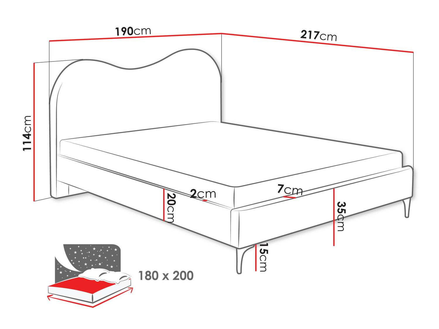 Ágy Łóżko tapicerowane ze stelażem TRIANA, Alvó felület mérete: 180 x 200 cm