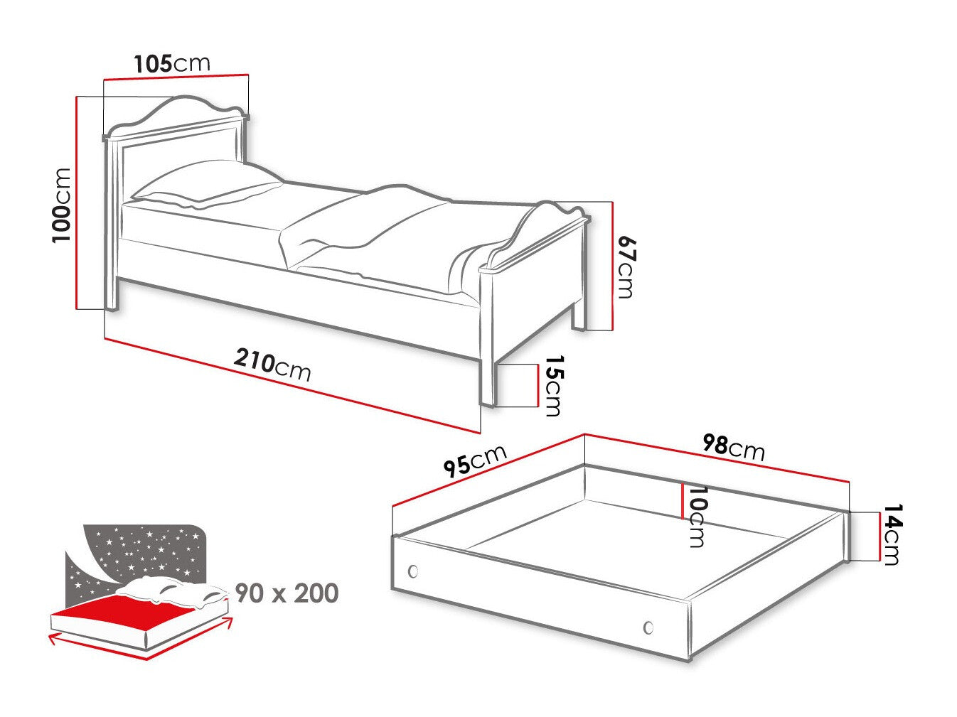 Ágyneműtartó méretei15 x 98 x 96 cm