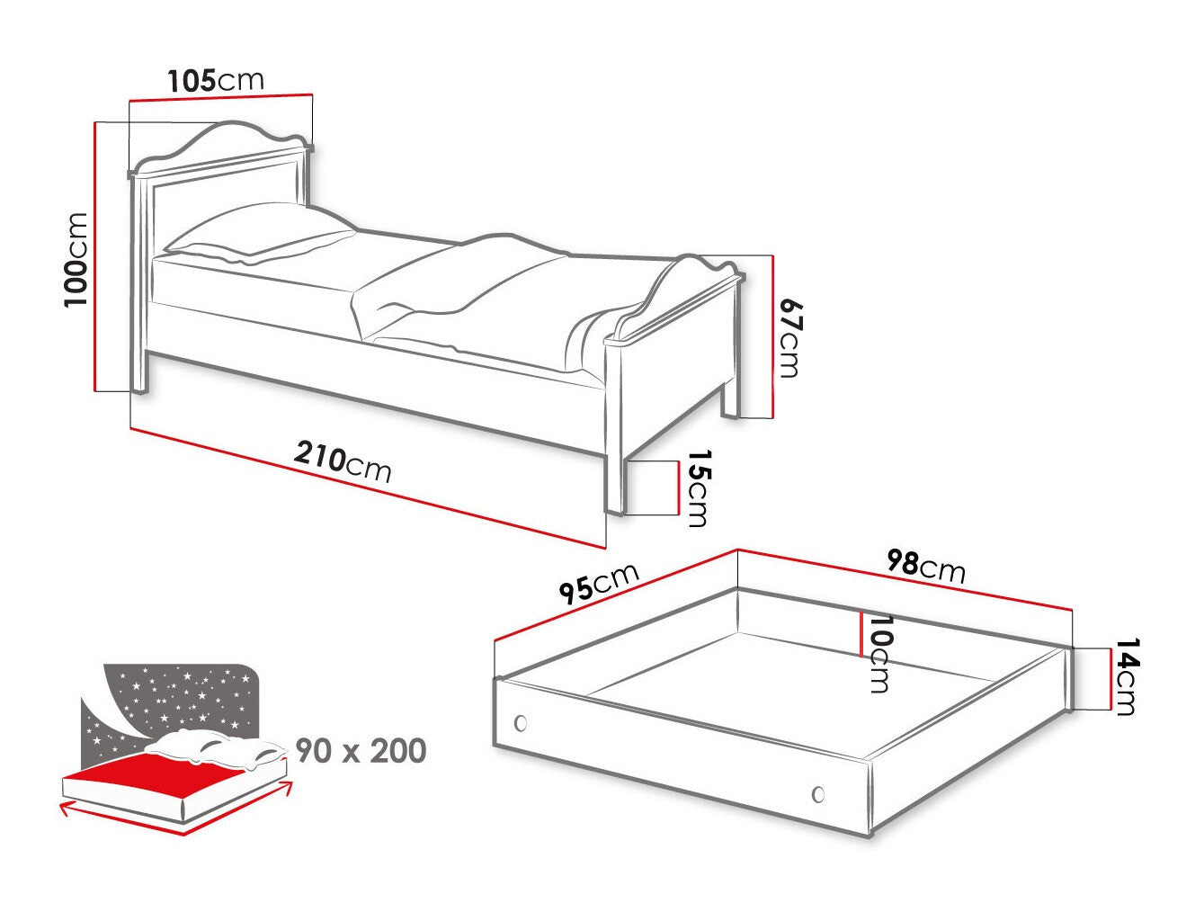 Ágyneműtartó méretei15 x 98 x 96 cm