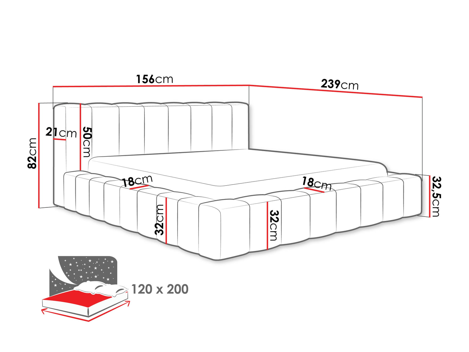 Ágyneműtartó méretei28 x 120 x 200 cm