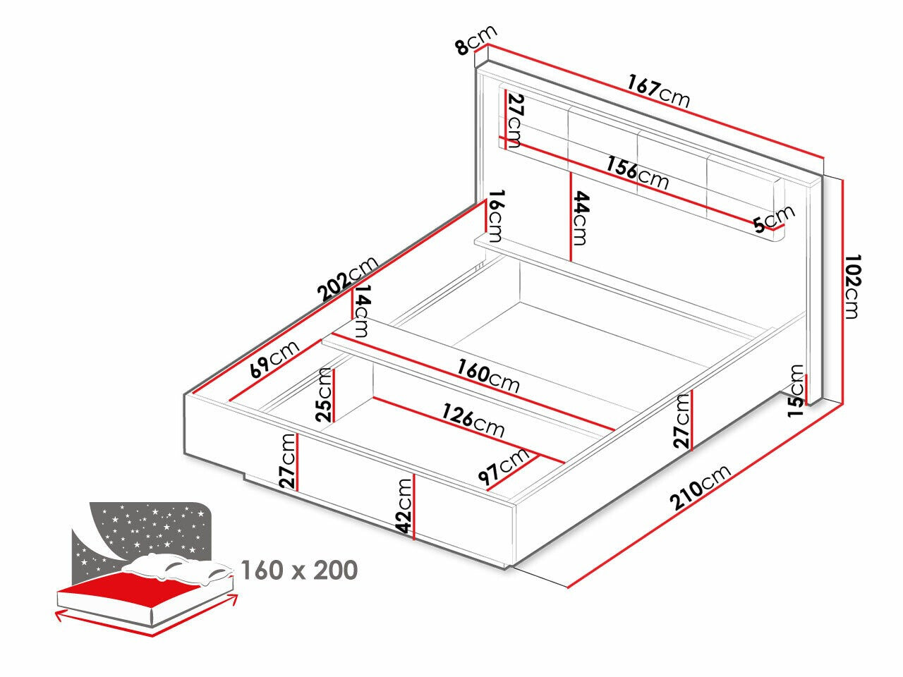 Matrac az ágykeretben14.8 cm