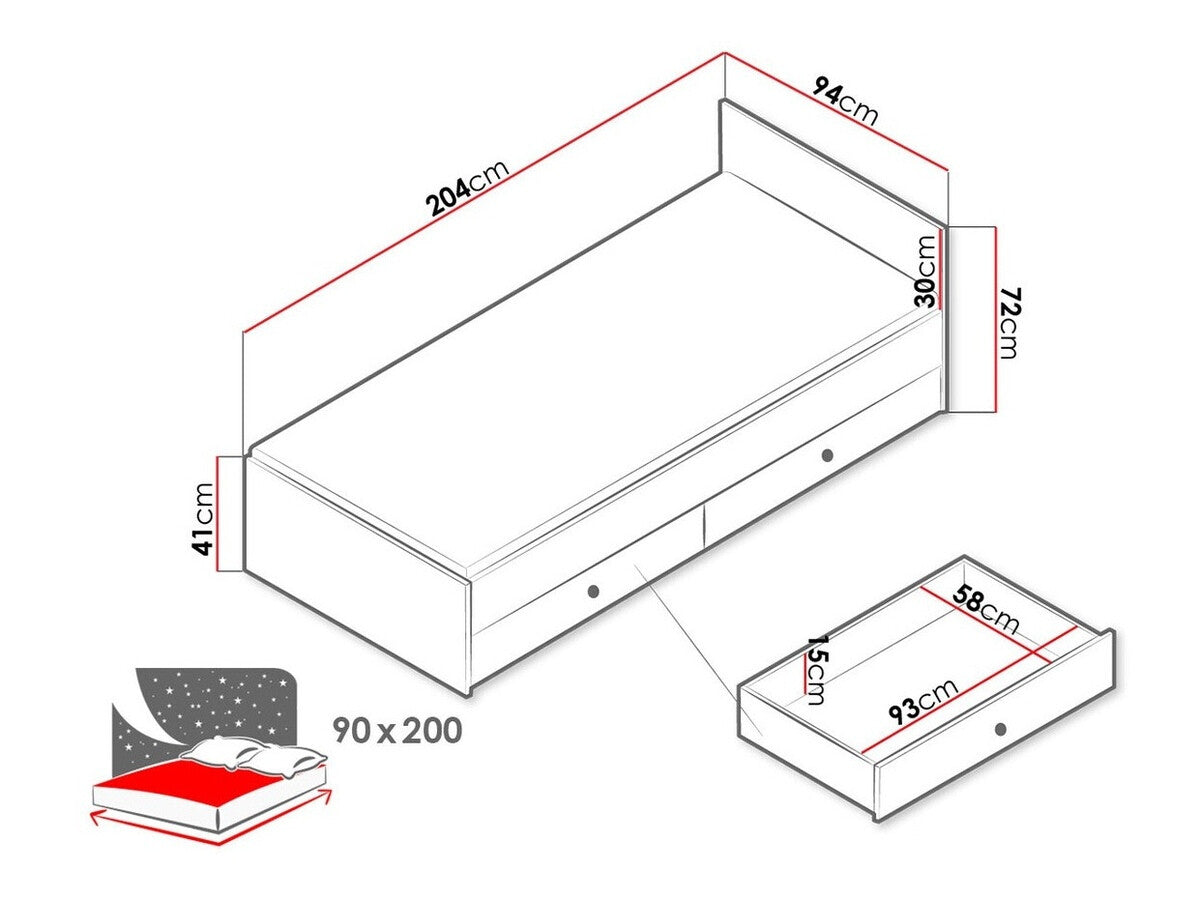 Ágyneműtartó méretei15 x 93 x 58 cm