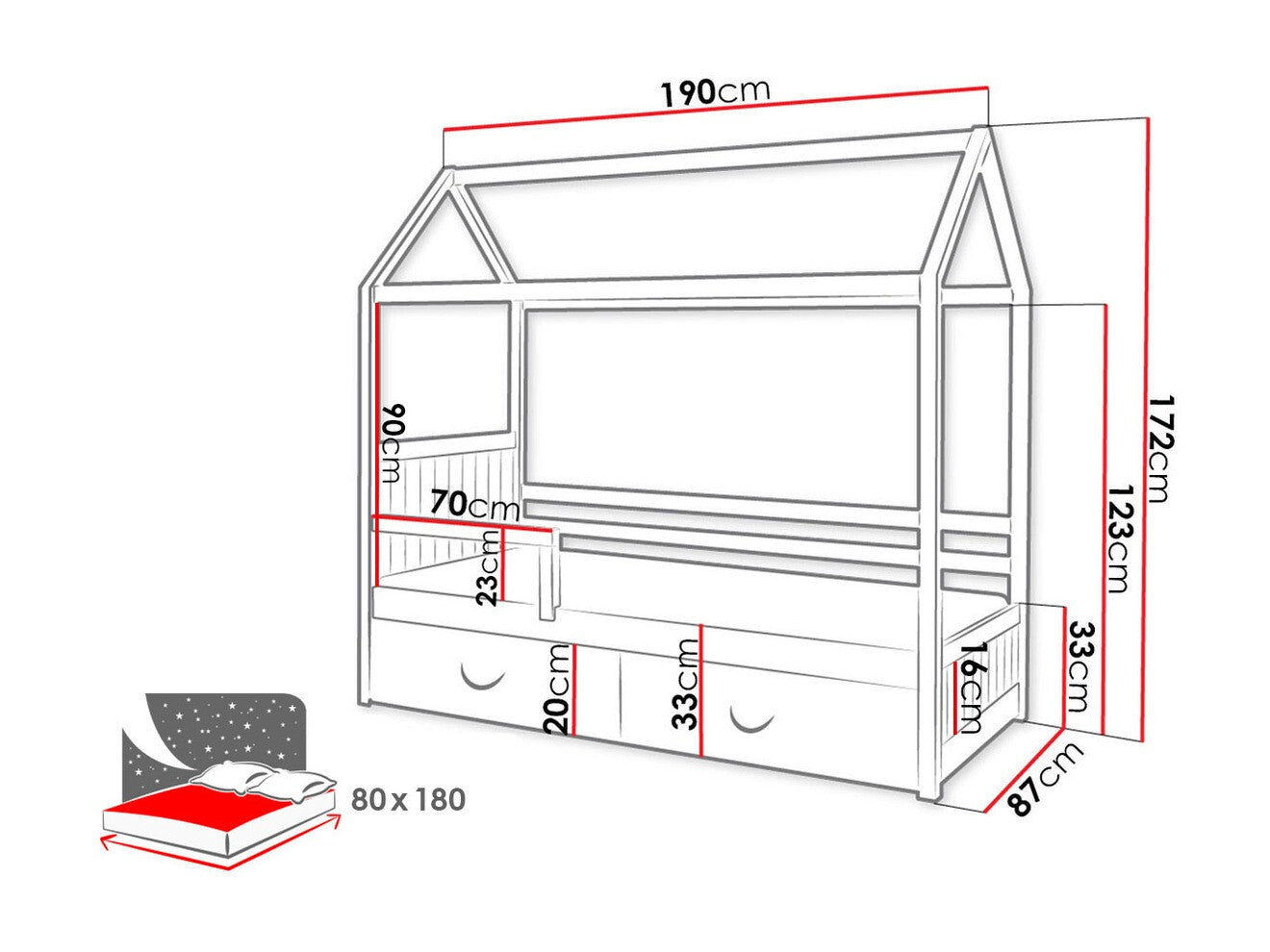 Ágy Rozalia (Pieris), Alvó felület mérete: 80 x 180 cm, Ütközőgerenda: Igen