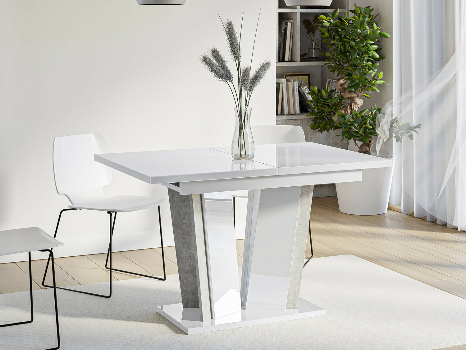 Asztal Stół DOHA 2 Biały połysk + Beton (Fényes fehér)