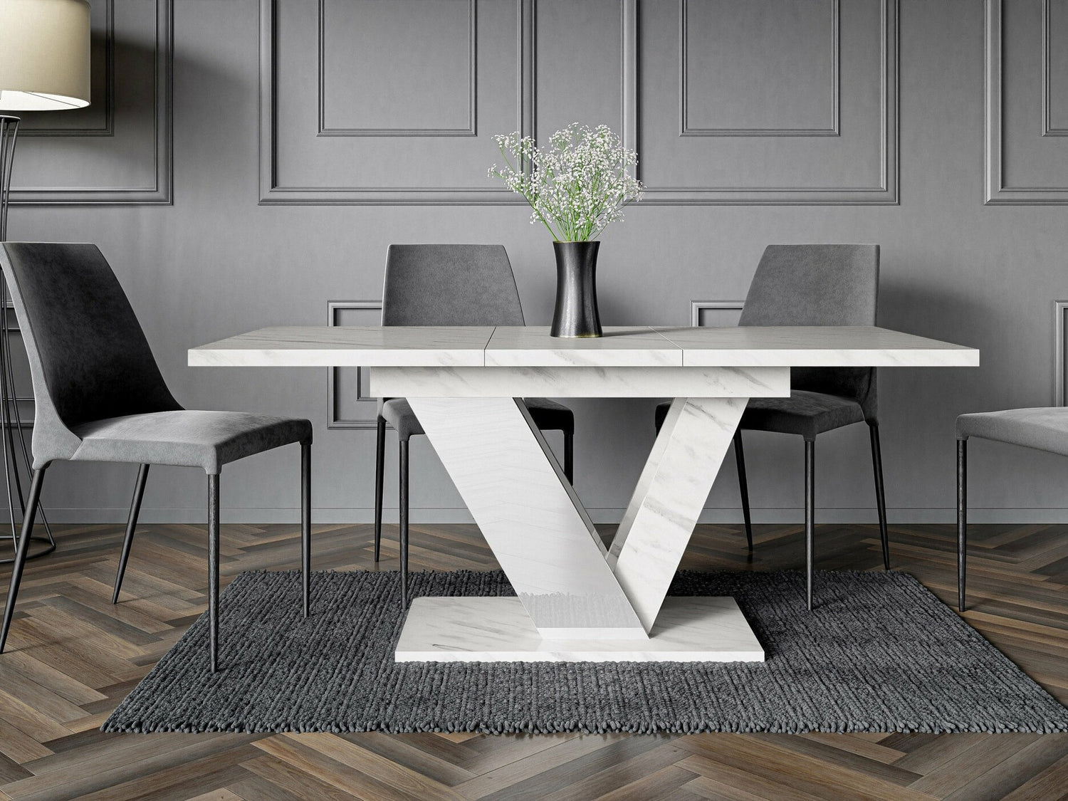 Asztal Stół DUBAI Marmur Bianco + Biały połysk (Fehér márvány)