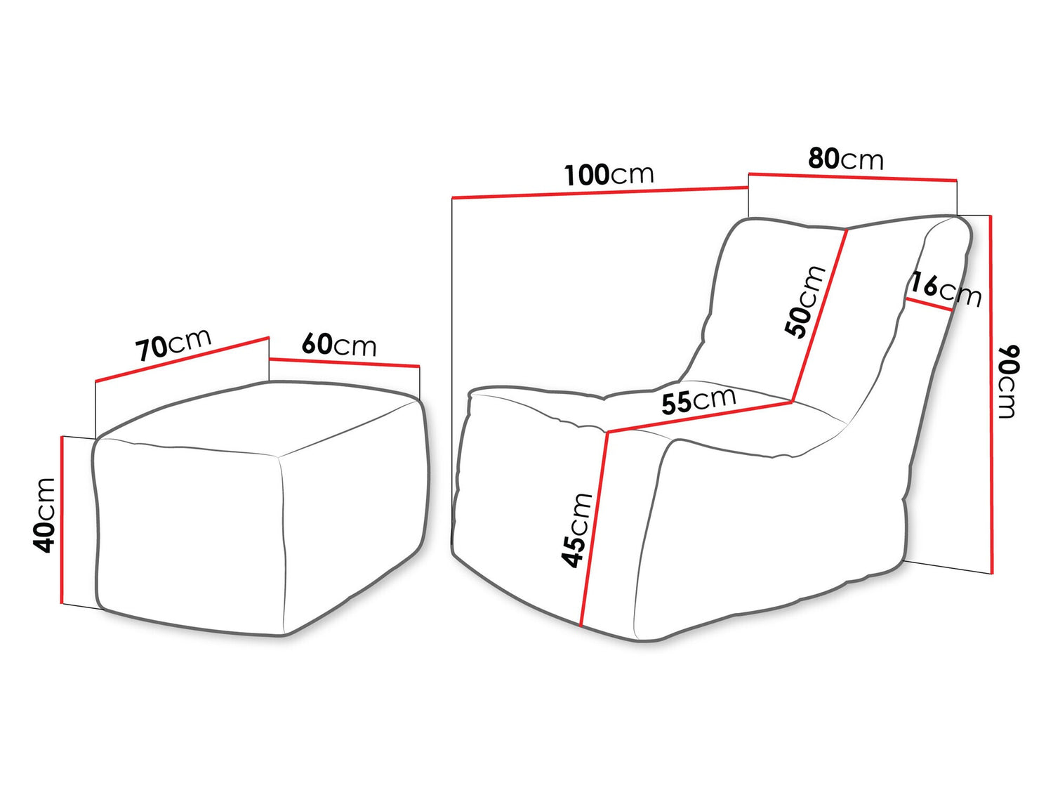 Puff méretek40 x 70 x 60 cm