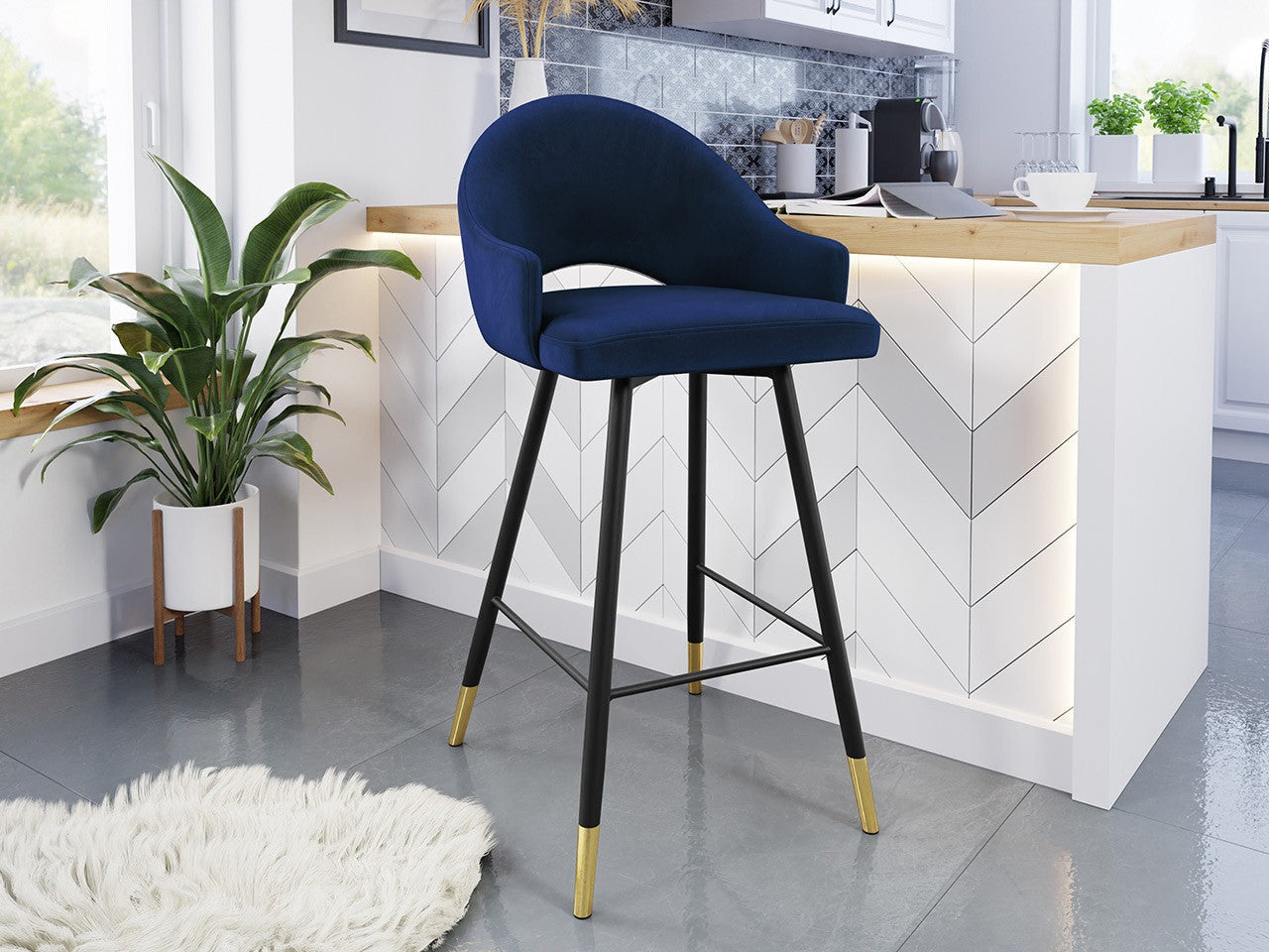 Bárszék Hoker ROSA, Szín: Fekete + Magic Velvet 2216, Lábak színe: Aranysárga