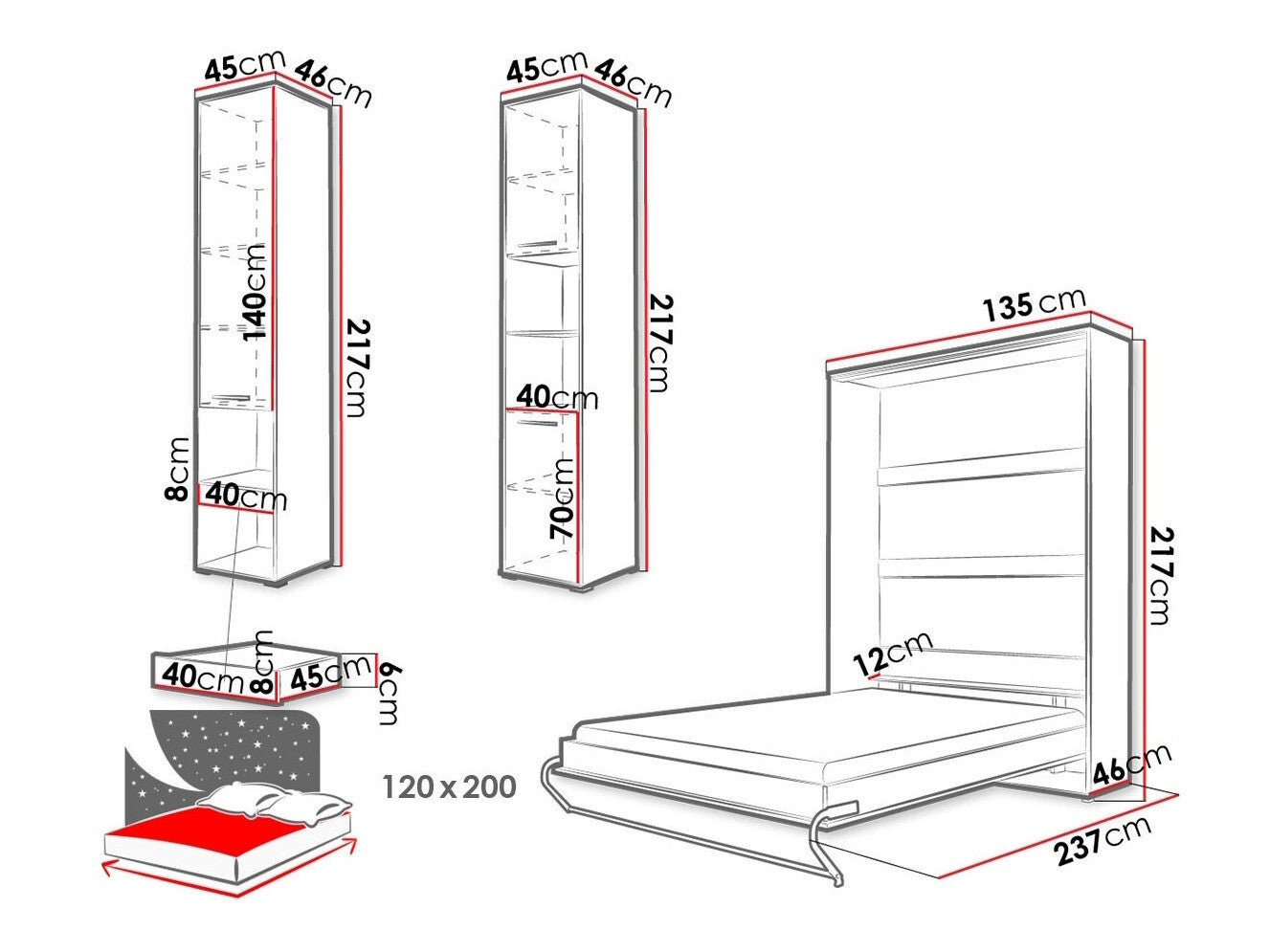Ágykeret méretei217 x 135 x 237 cm