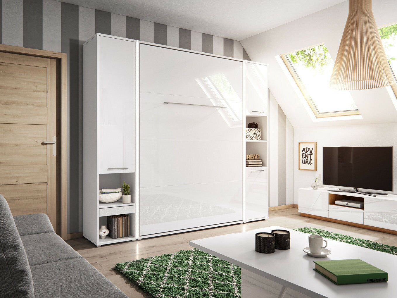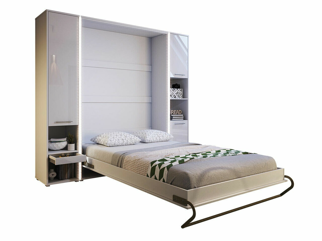Bútorkészlet Concept Pro I, Szín: Fényes fehér + Fehér, Alvó felület mérete: 120 x 200 cm