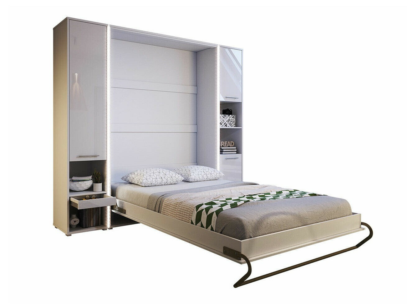 Bútorkészlet Concept Pro I, Szín: Fényes fehér + Fehér, Alvó felület mérete: 140 x 200 cm