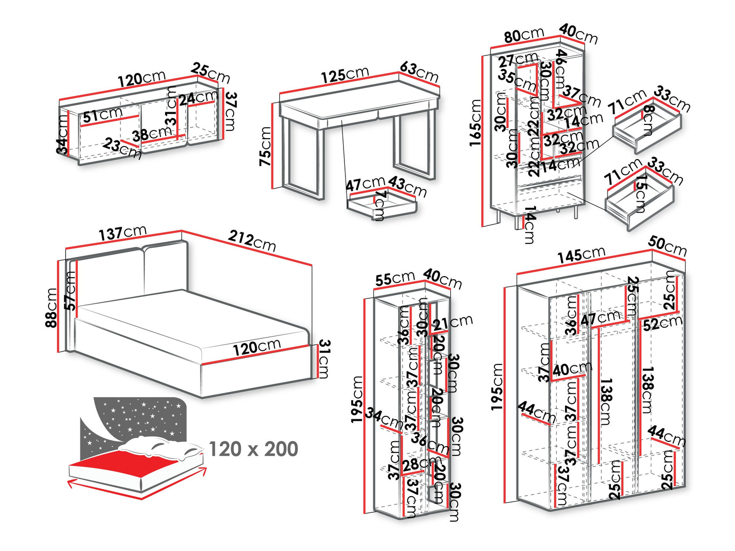 Ágyneműtartó méretei15 x 120 x 201 cm
