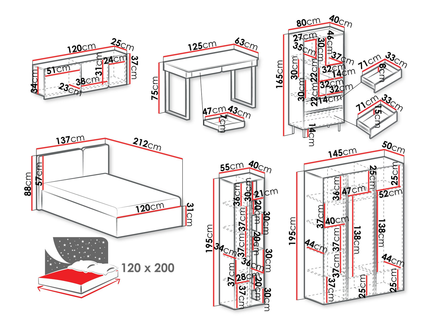 Ágyneműtartó méretei15 x 120 x 201 cm