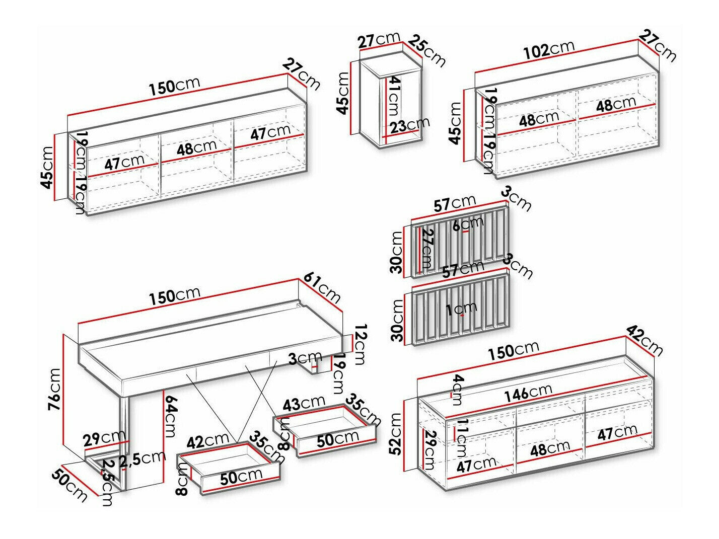Függesztett szekrény méretei45 x 150 x 27 x 102 x 27 cm