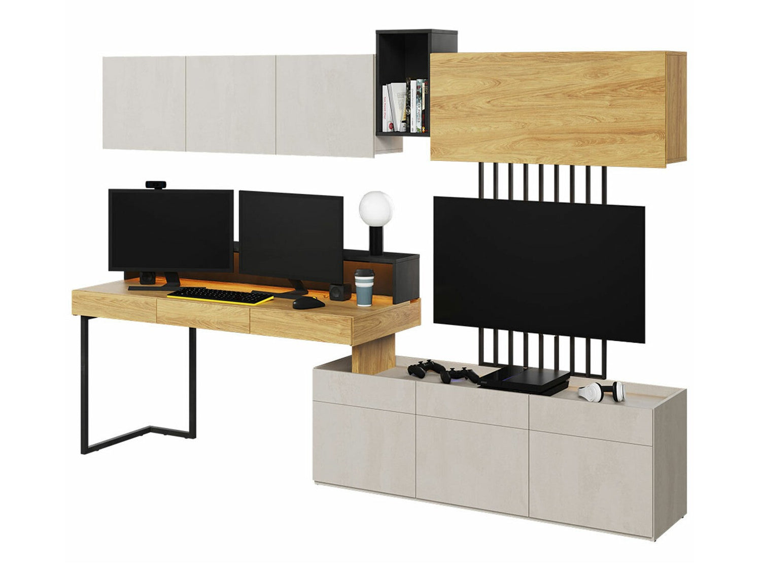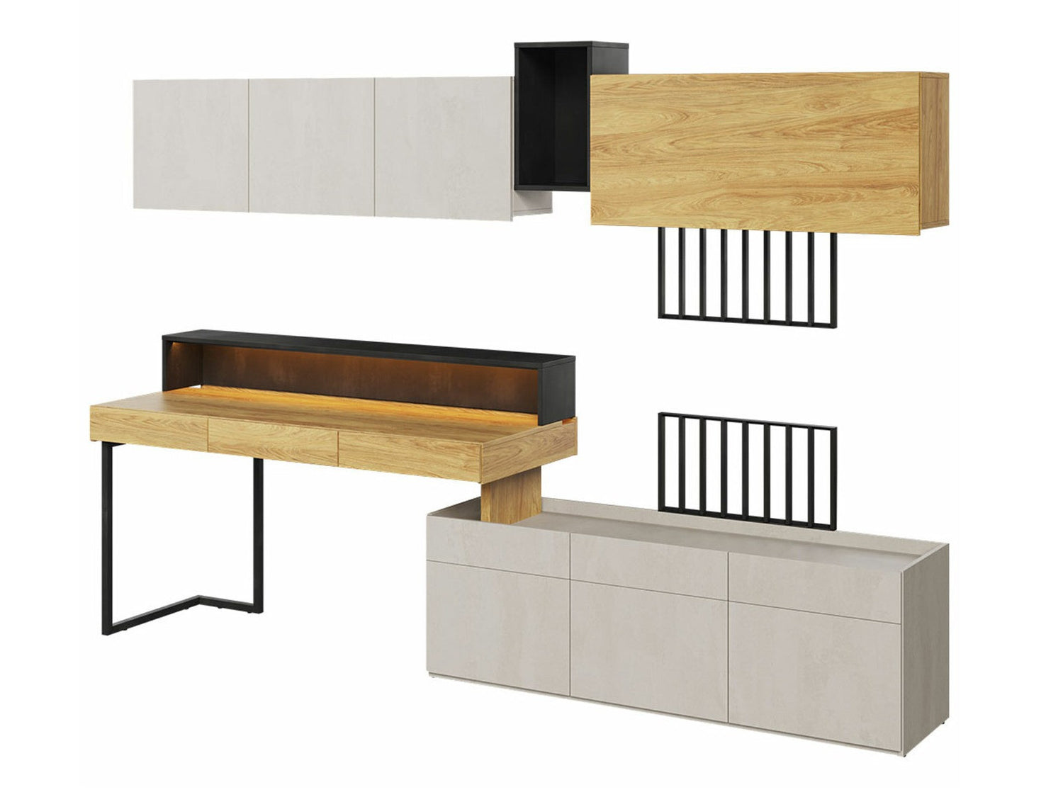 Bútorkészlet Meble młodzieżowe TEEN FLEX VIII Hikora Naturalna/Raw Acél/Silk Flou/Czarny