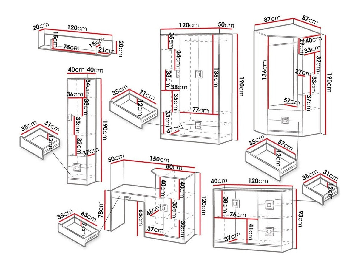A szekrény méretei190 x 87 x 87 x 120 x 50 cm