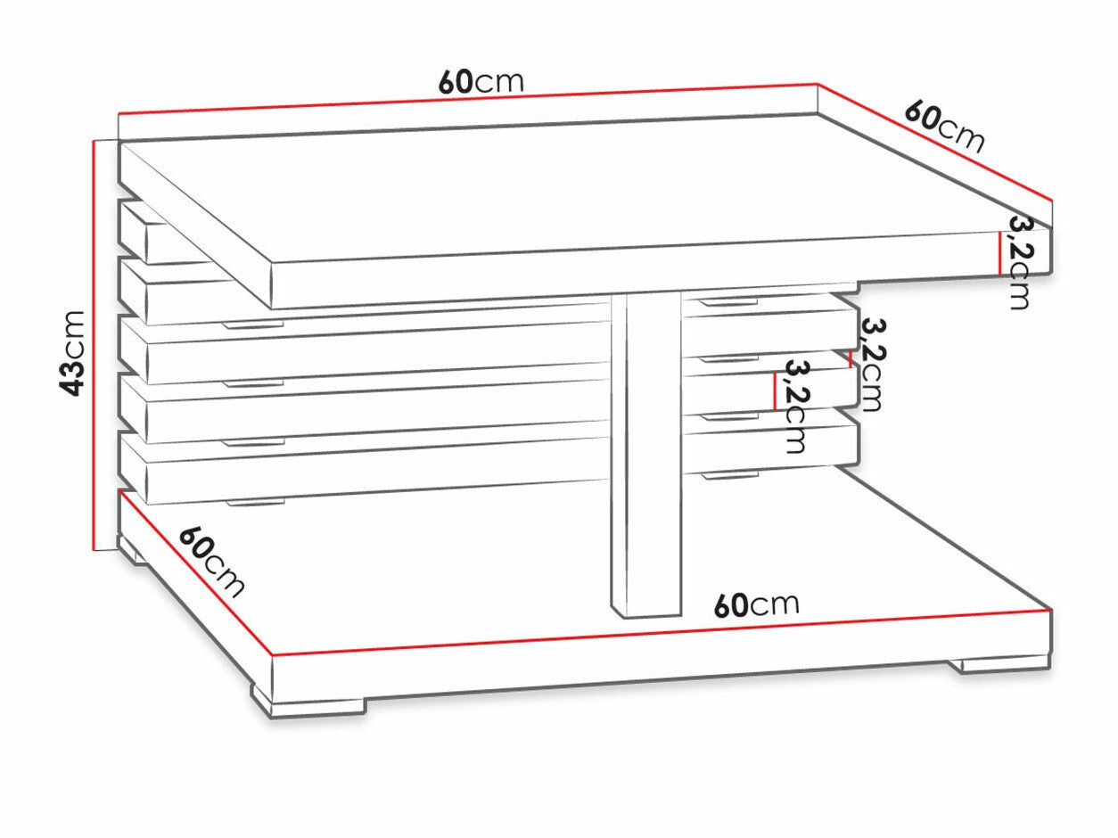 Dohányzóasztal Kyoto +2 (Komoso 2), Szín: Artisan tölgy + Fekete
