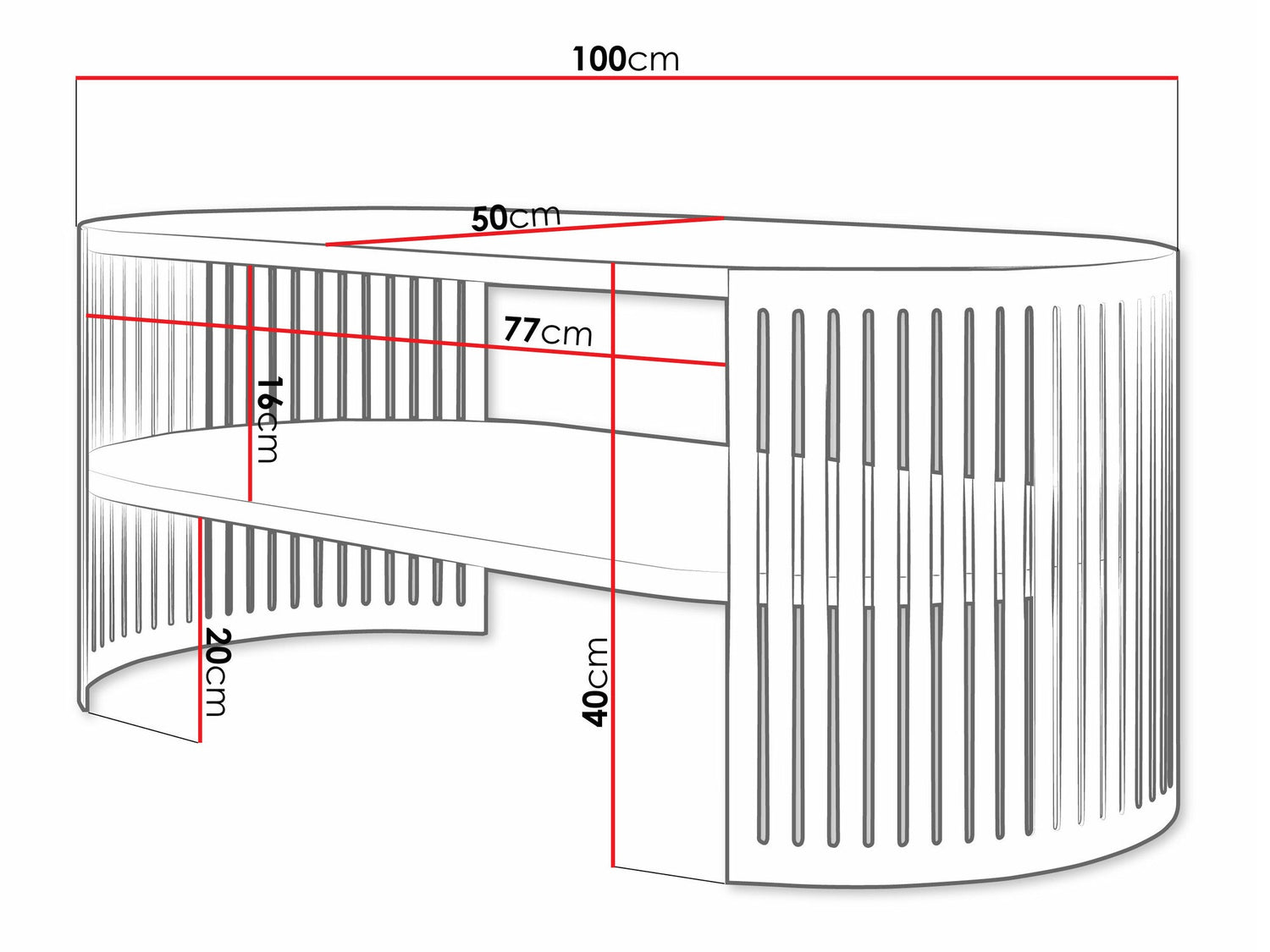 Dohányzóasztal Stolik kawowy owalny FIKOLI GOLD I, Szín: Aranysárga + Fehér márvány