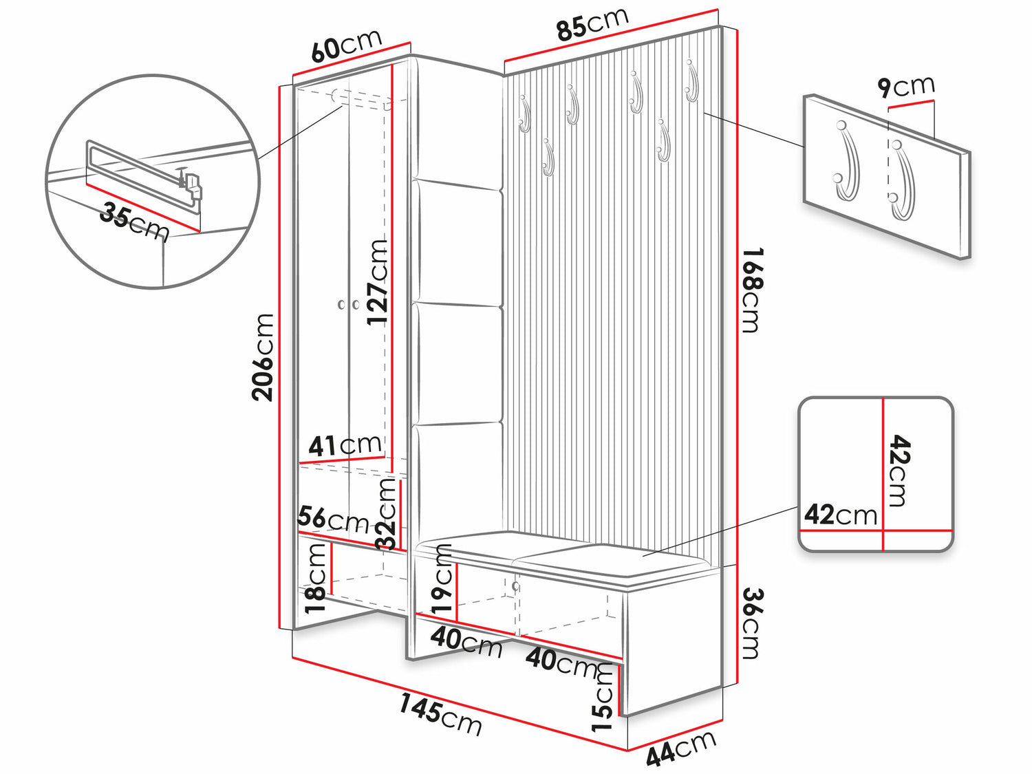 Előszoba garnitúra Balma III (Esmoltis), Szín: Artisan tölgy + Abriamo 6