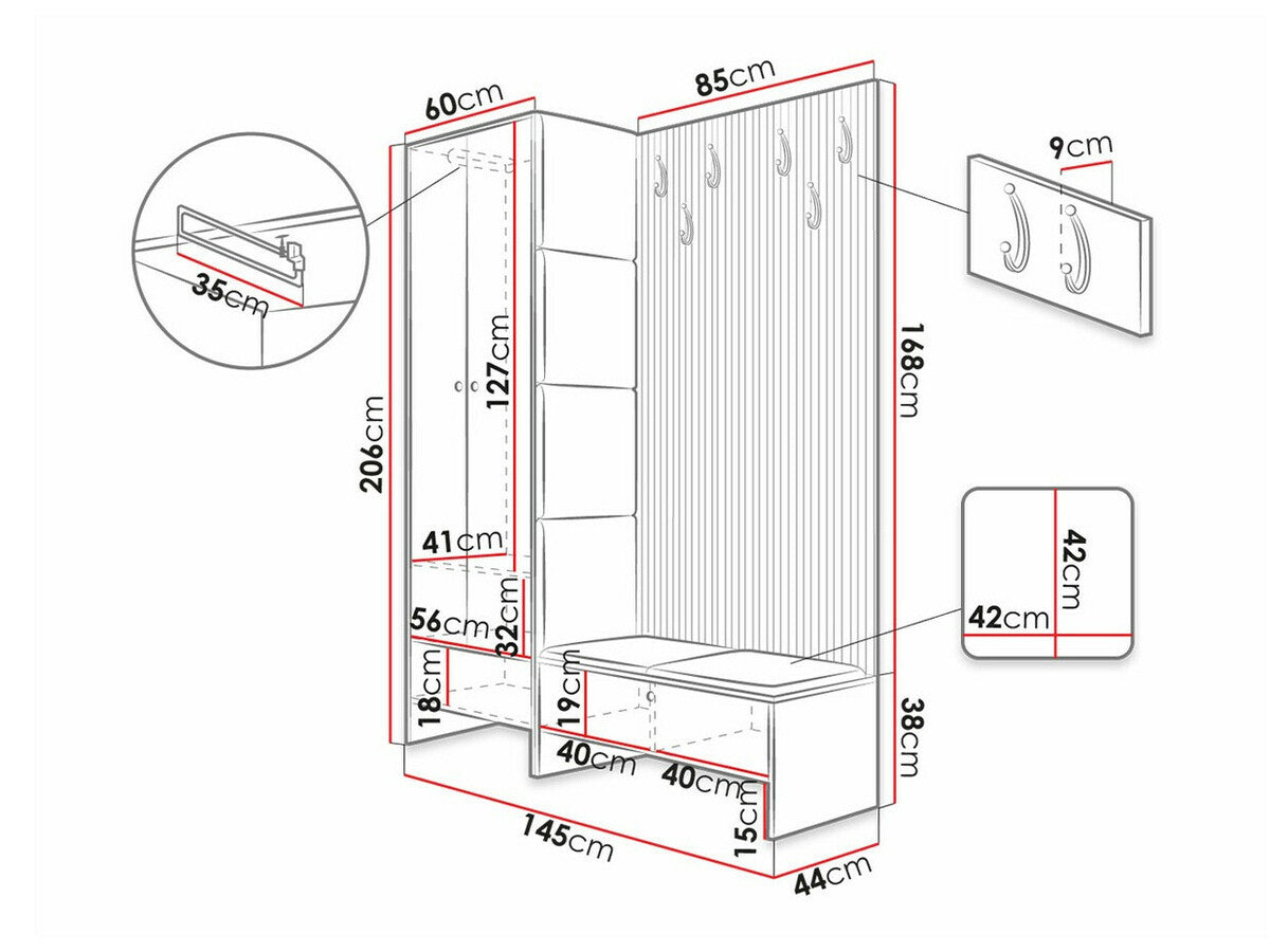 Előszoba garnitúra Balma III (Esmoltis), Szín: Artisan tölgy + Öko bőr Soft 017