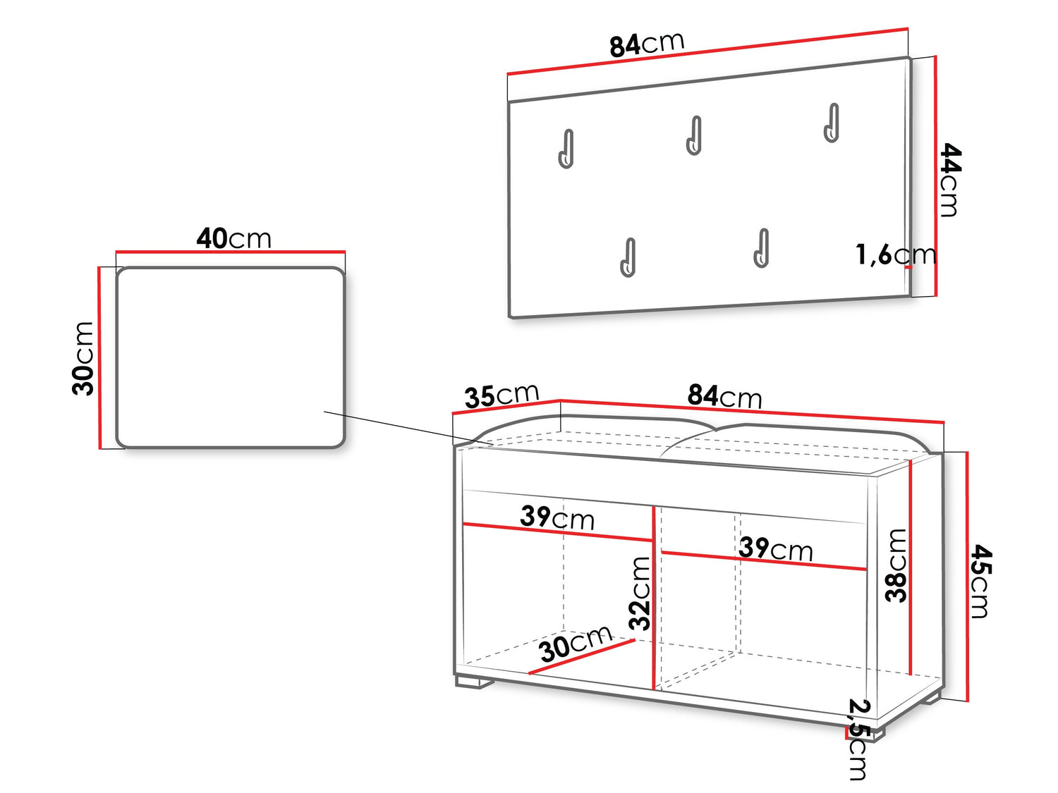 Előszoba garnitúra Garderoba GESITA, Keret színe: Tölgy, Puha falpanel színe: Manila 26