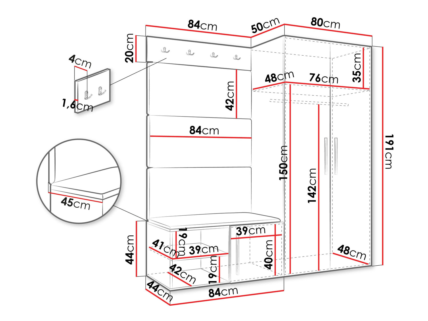 Előszoba garnitúra Garderoba MEDI I, Keret színe: Artisan tölgy, Puha falpanel színe: Manila 18