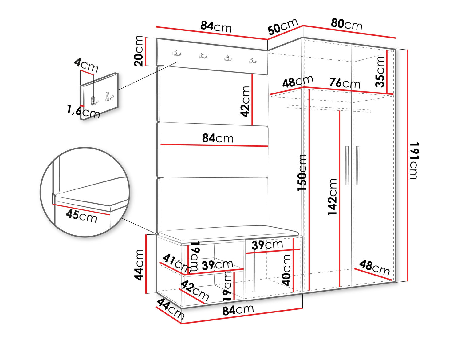Előszoba garnitúra Garderoba MEDI I, Keret színe: Artisan tölgy, Puha falpanel színe: Manila 26