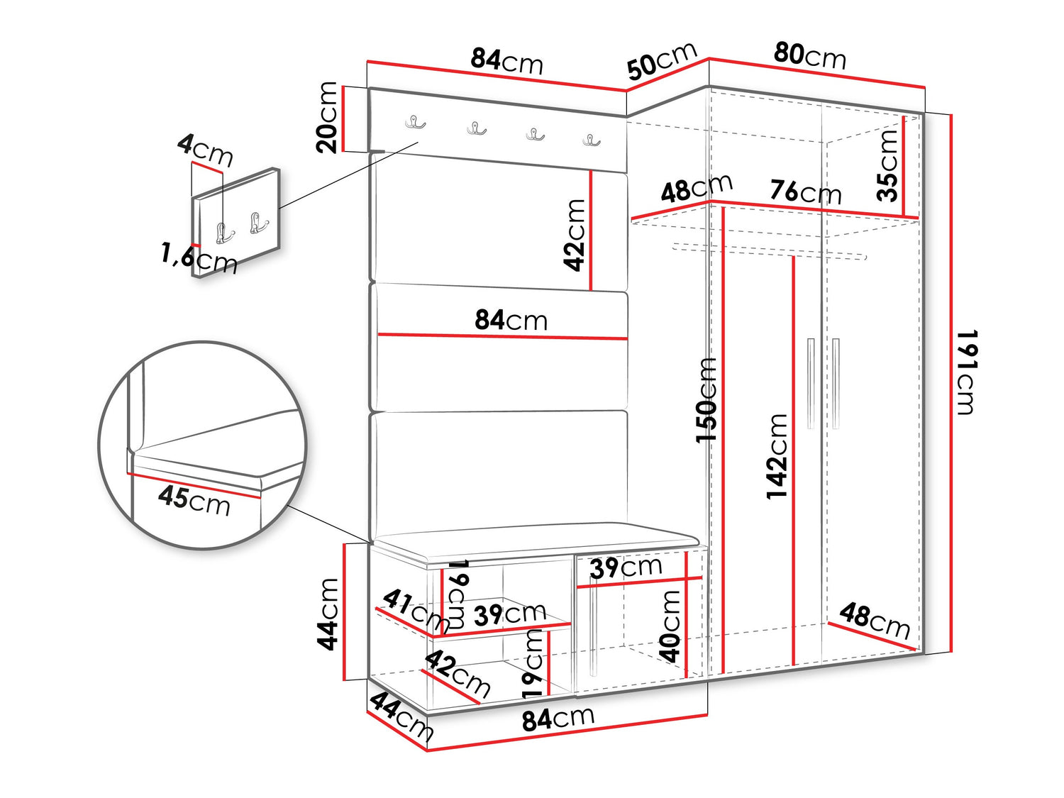 Előszoba garnitúra Garderoba MEDI I, Keret színe: Artisan tölgy, Puha falpanel színe: Soft 011