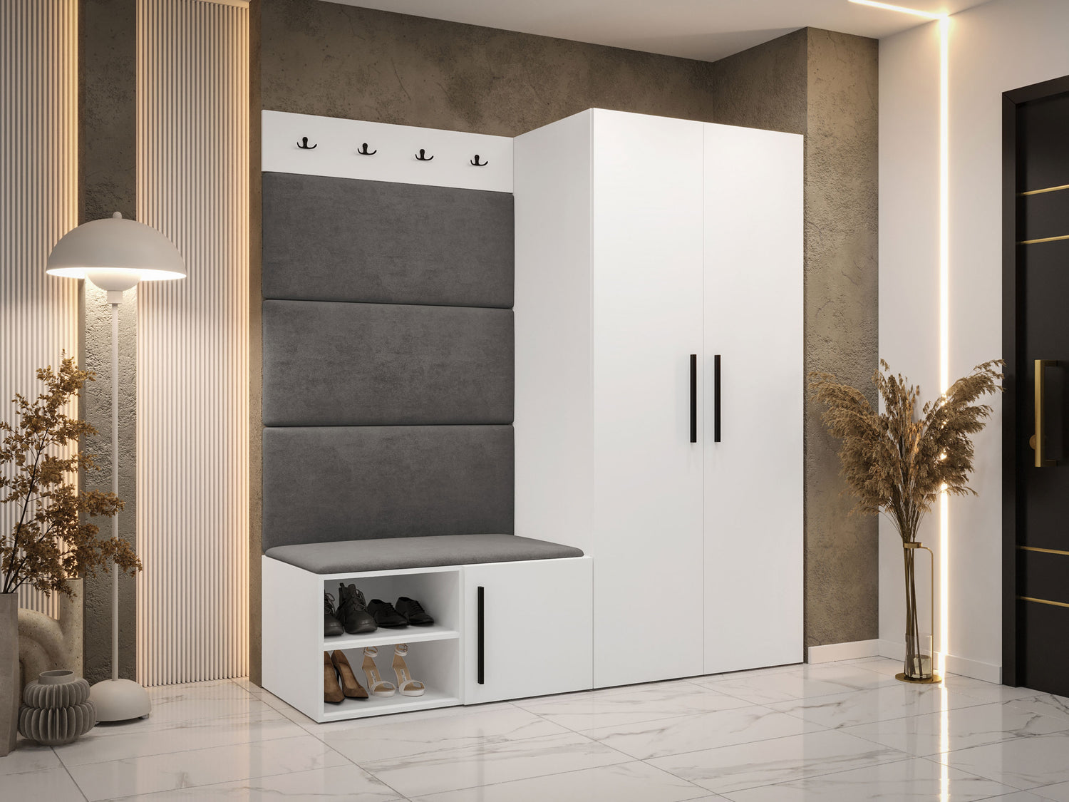 Előszoba garnitúra Garderoba MEDI I, Keret színe: Fehér, Puha falpanel színe: Manila 16
