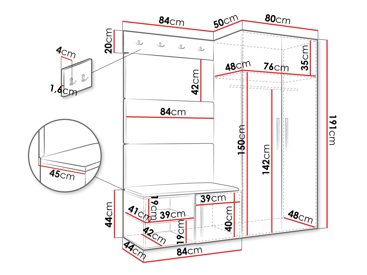 Előszoba garnitúra Garderoba MEDI I, Keret színe: Fehér, Puha falpanel színe: Manila 18