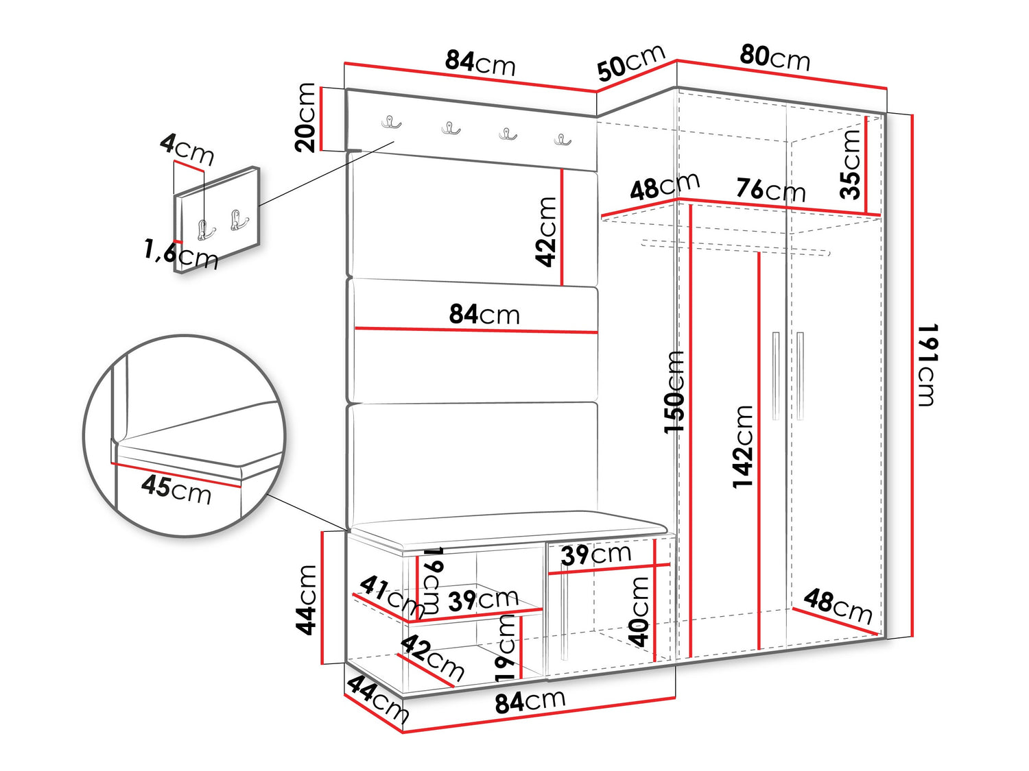 Előszoba garnitúra Garderoba MEDI I, Keret színe: Fehér, Puha falpanel színe: Manila 26
