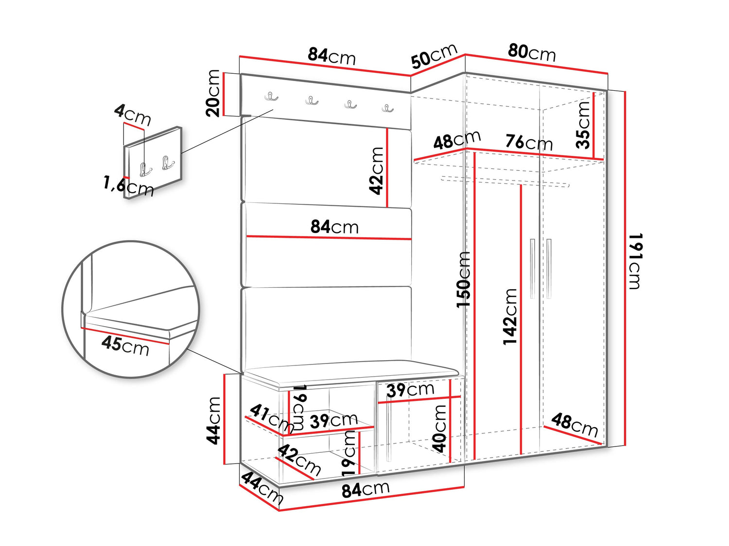 Előszoba garnitúra Garderoba MEDI I, Keret színe: Kasmír, Puha falpanel színe: Manila 02