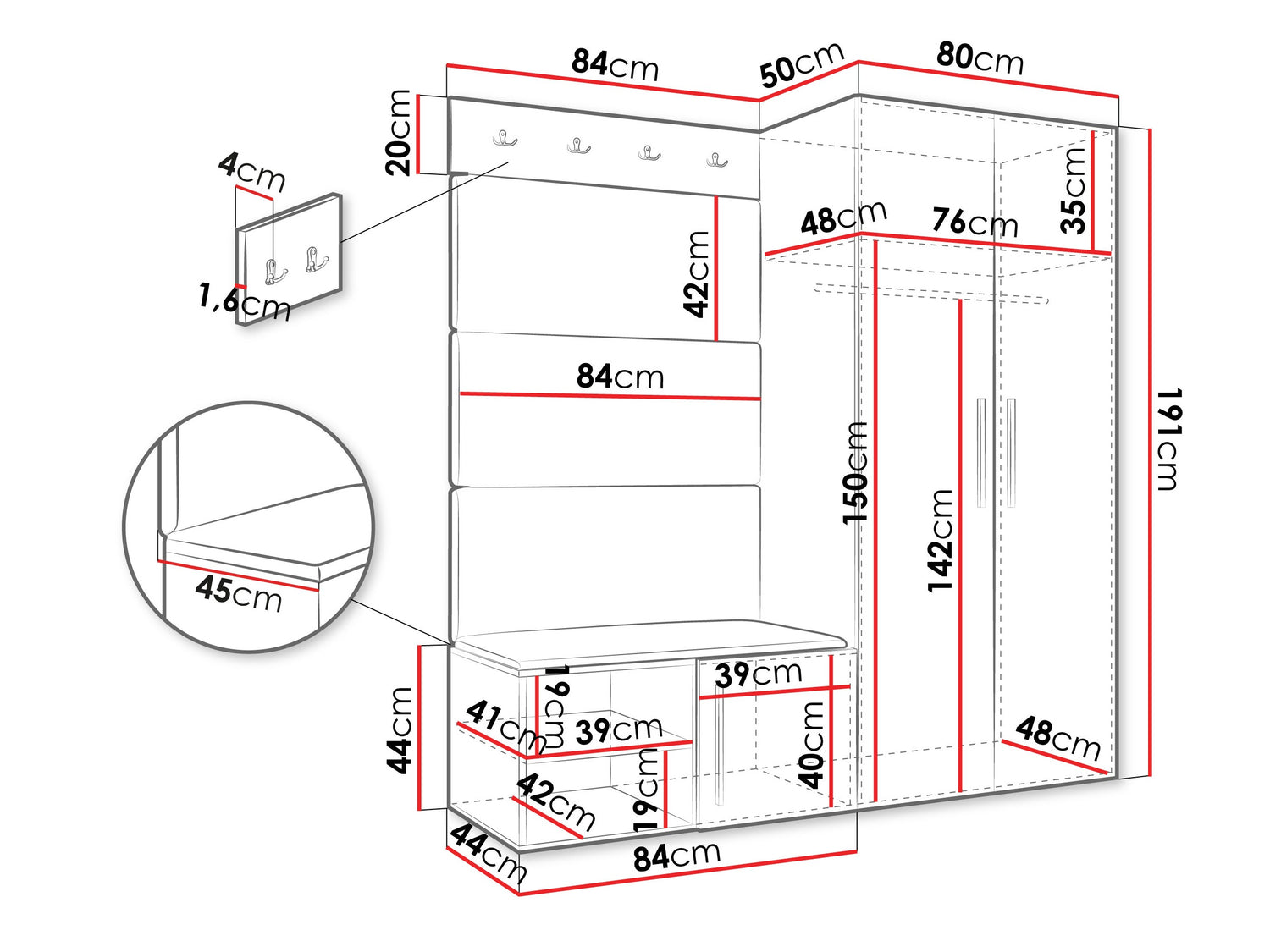 Előszoba garnitúra Garderoba MEDI I, Keret színe: Kasmír, Puha falpanel színe: Manila 04