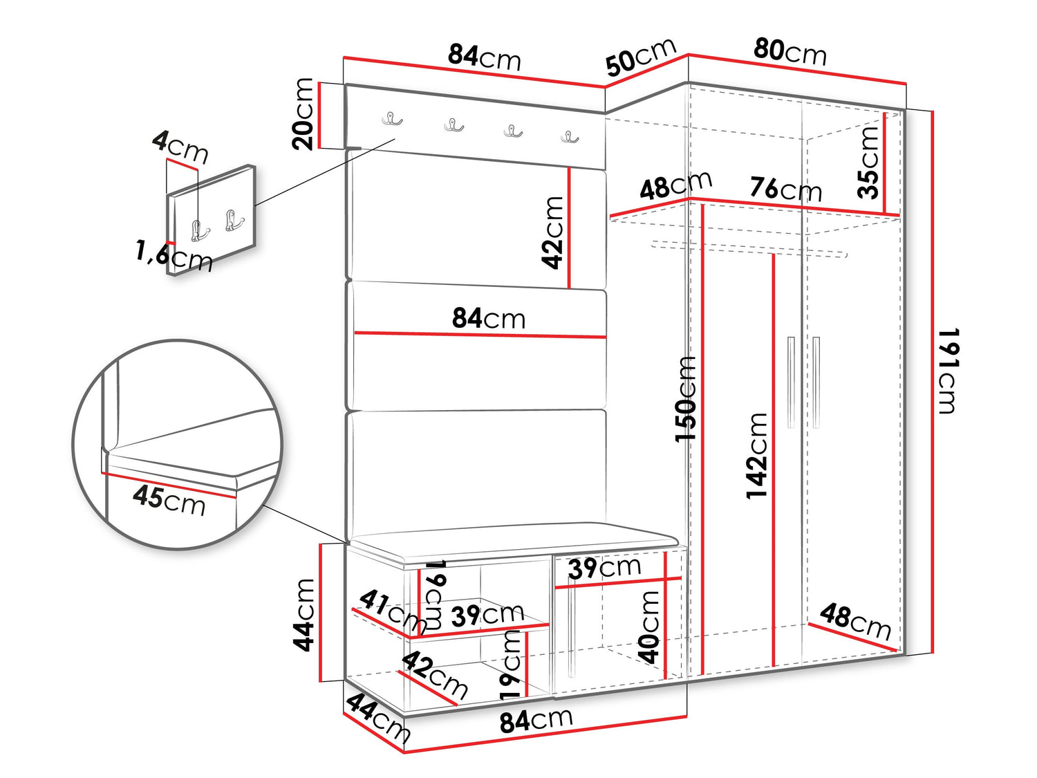 Előszoba garnitúra Garderoba MEDI I, Keret színe: Kasmír, Puha falpanel színe: Manila 11