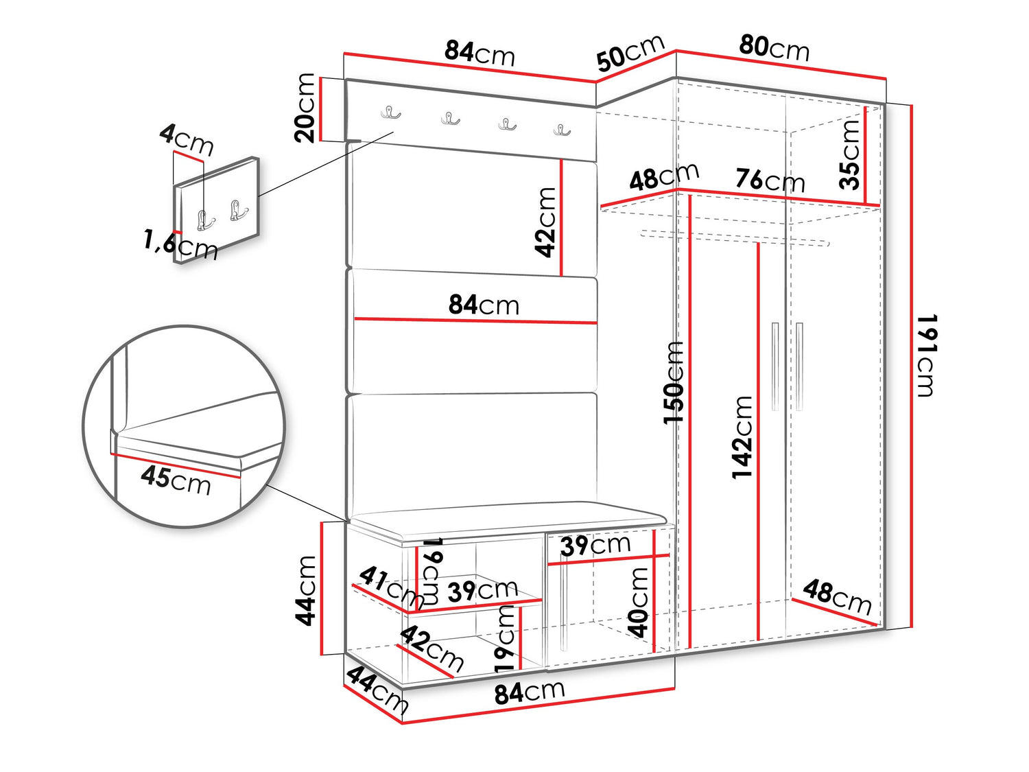 Előszoba garnitúra Garderoba MEDI I, Keret színe: Kasmír, Puha falpanel színe: Manila 18
