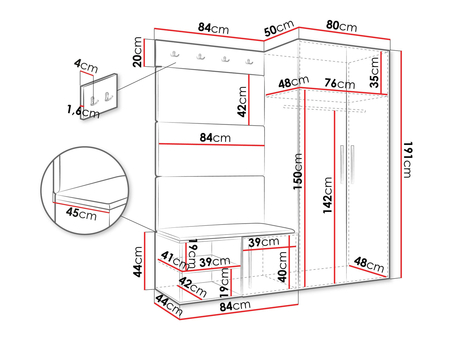 Előszoba garnitúra Garderoba MEDI I, Keret színe: Kasmír, Puha falpanel színe: Manila 26