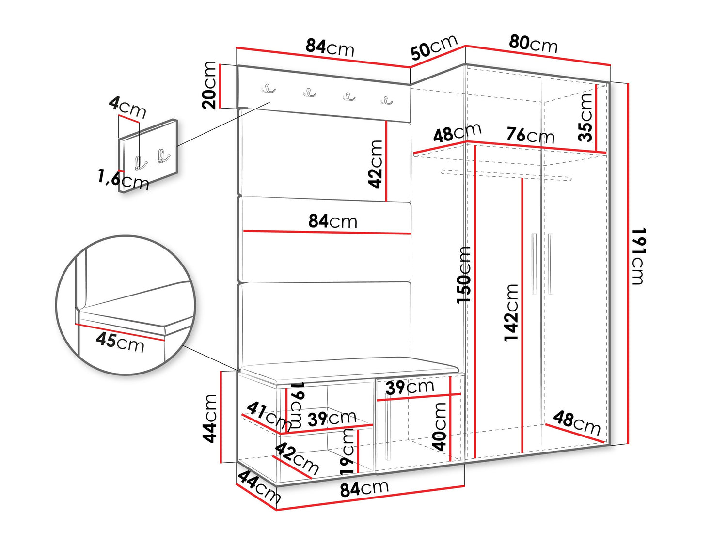 Előszoba garnitúra Garderoba MEDI I, Keret színe: Kasmír, Puha falpanel színe: Manila 35