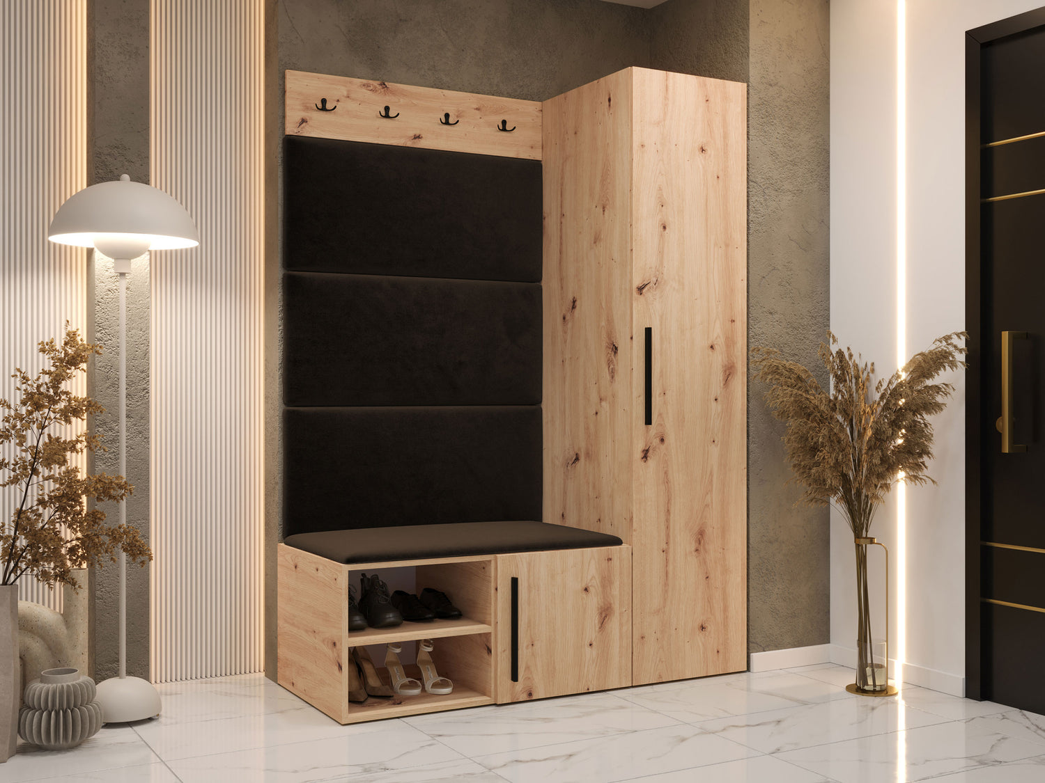 Előszoba garnitúra Garderoba MEDI II, Keret színe: Artisan tölgy, Puha falpanel színe: Manila 04