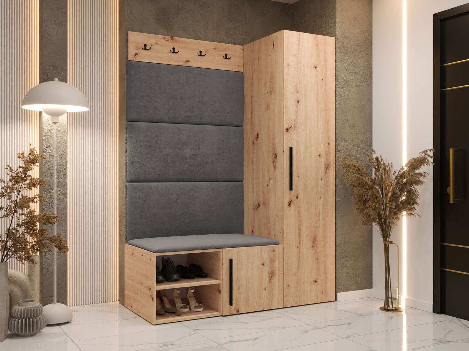 Előszoba garnitúra Garderoba MEDI II, Keret színe: Artisan tölgy, Puha falpanel színe: Manila 16