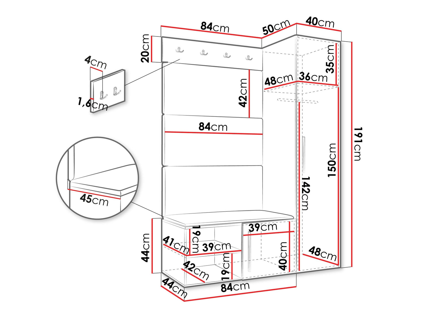 Előszoba garnitúra Garderoba MEDI II, Keret színe: Fehér, Puha falpanel színe: Soft 017